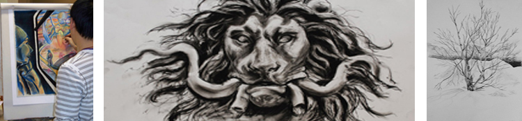 This complementary pair of introductory courses allows students to acquire the fundamental skills of drawing, and lets them explore form, content, and subject matter in a variety of drawing media. Artistic awareness is achieved by introducing students to the language of art and to the creative accomplishments of the past. Speaking clearly about one's artistic ideas and concerns by using the vocabulary of formal analysis becomes an important aspect of "seeing", as identification allows for critical studio practice and discussion. Art101 establishes basic understanding; Art102 develops skills and themes initiated during Art101.