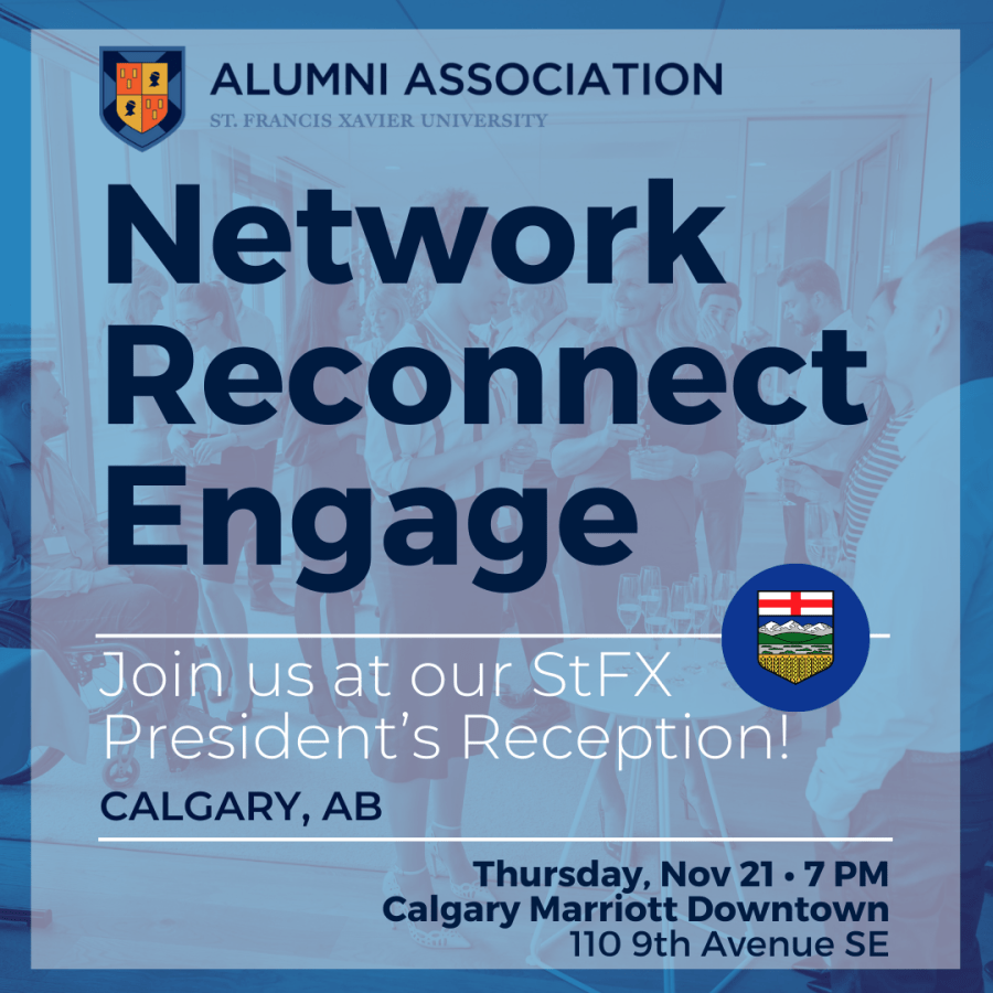 Why come to an alumni reception? These special events demonstrate the power of the X-Ring and the Xaverian community as we connect our young alumni with our ‘seasoned’ alumni for an evening of networking, conversation, and reminiscing. Alumni receptions are a unique opportunity to connect -- and reconnect -- with others and create opportunities for our alumni, regardless of where they are in their career path. It is also an opportunity to hear about the 'goings on' at StFX, its priorities for current students and beyond.