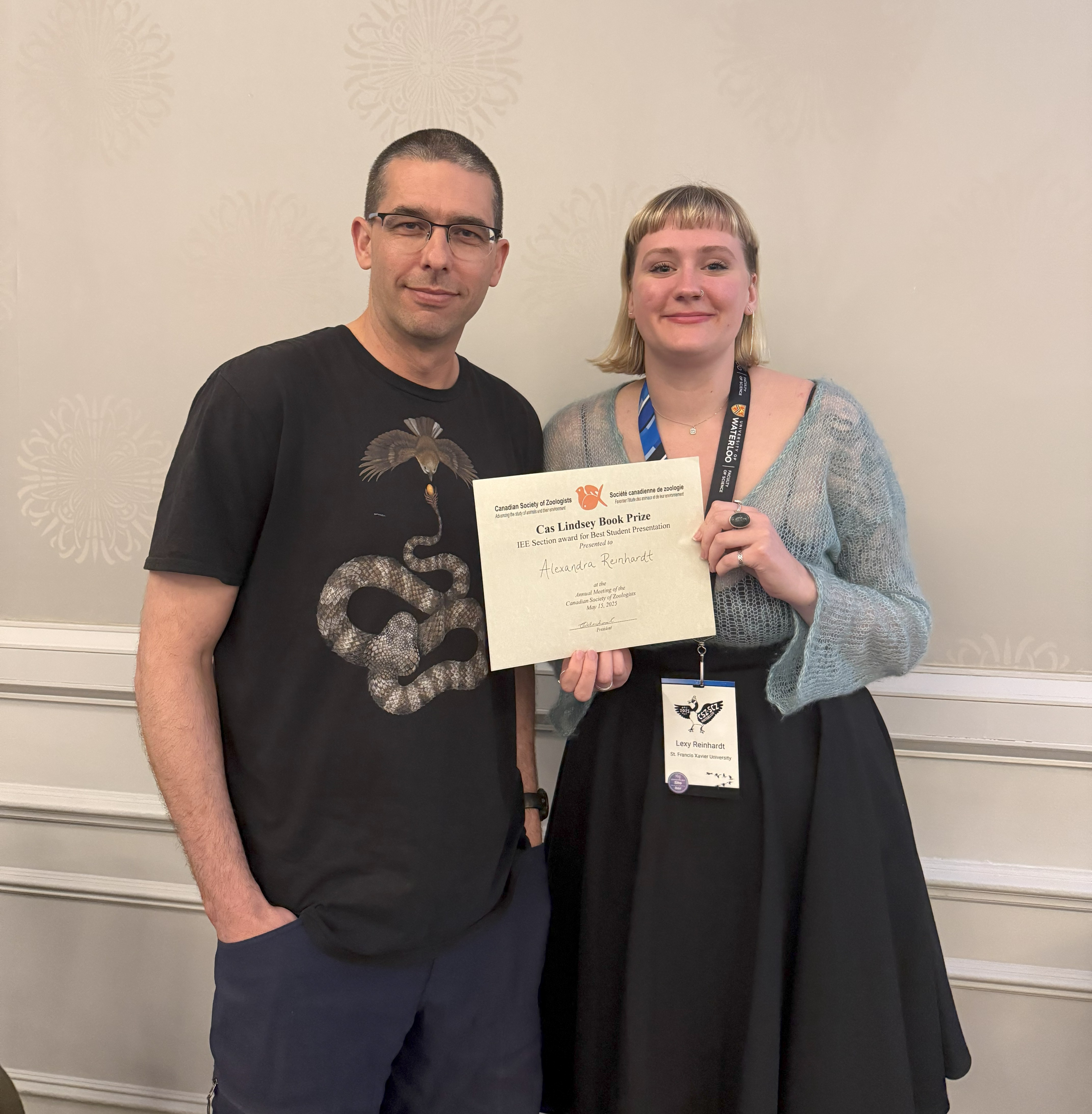 “Winning the prize is especially impressive from Lexy since this was her first presentation at a scientific conference. The annual meeting for the Canadian Society of Zoologists is our national conference for many different fields of animal science. The conference is very student focused, which means it’s both a great venue to do your first presentation, but also involves some stiff competition for the student awards,” says StFX biology professor and supervisor Dr. Russell Wyeth.
