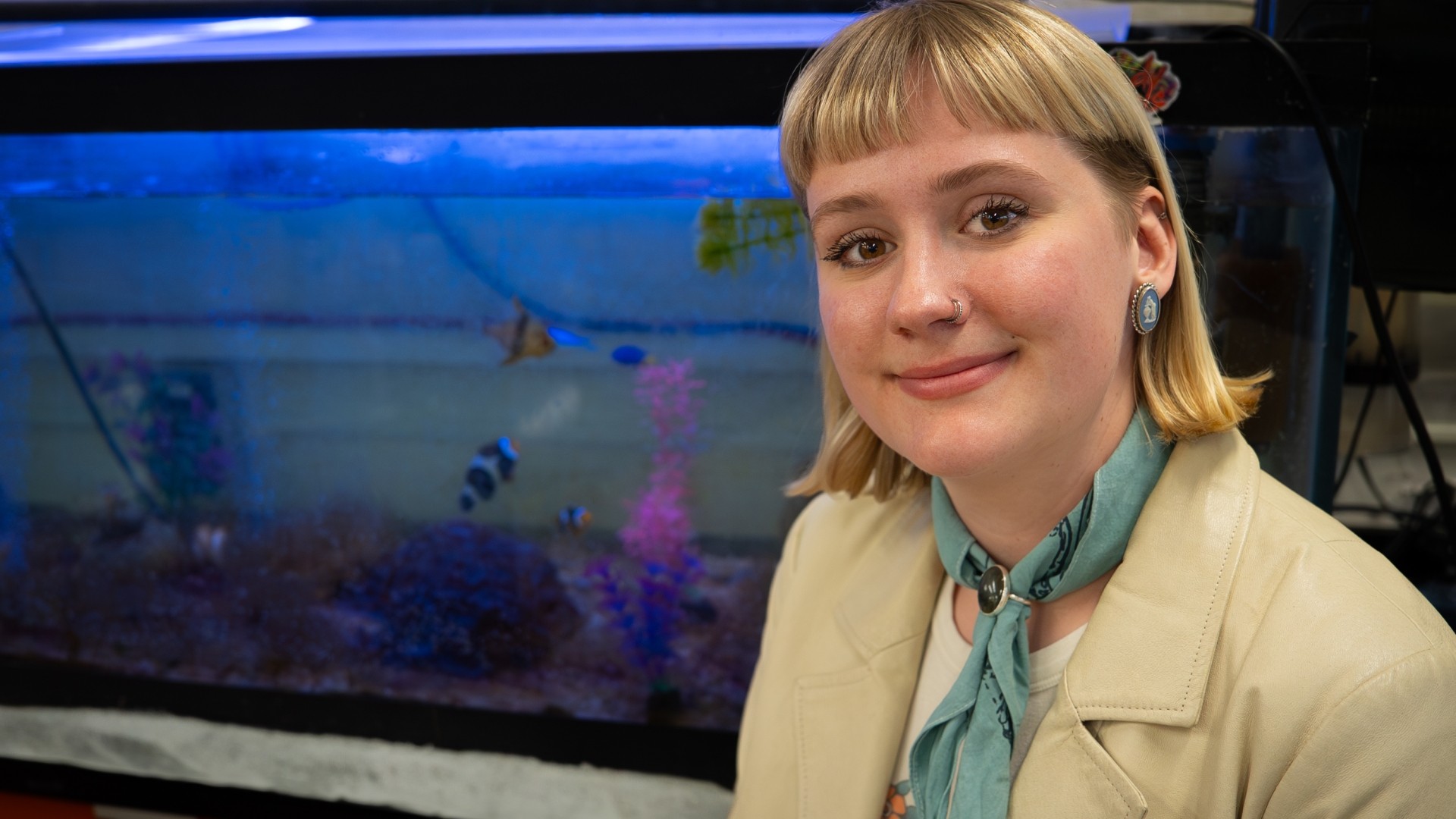 For weeks, Lexy Reinhardt, a StFX biology master’s student from Hamilton, ON, dove into the waters off the Bamfield Marine Sciences Centre on Vancouver Island where the rain forest meets the ocean taking videos of the sea slug, Hermissenda crassicornis in its natural habitat. She spent the next four months back at StFX watching hundreds of hours of video to track their behaviour and movement.