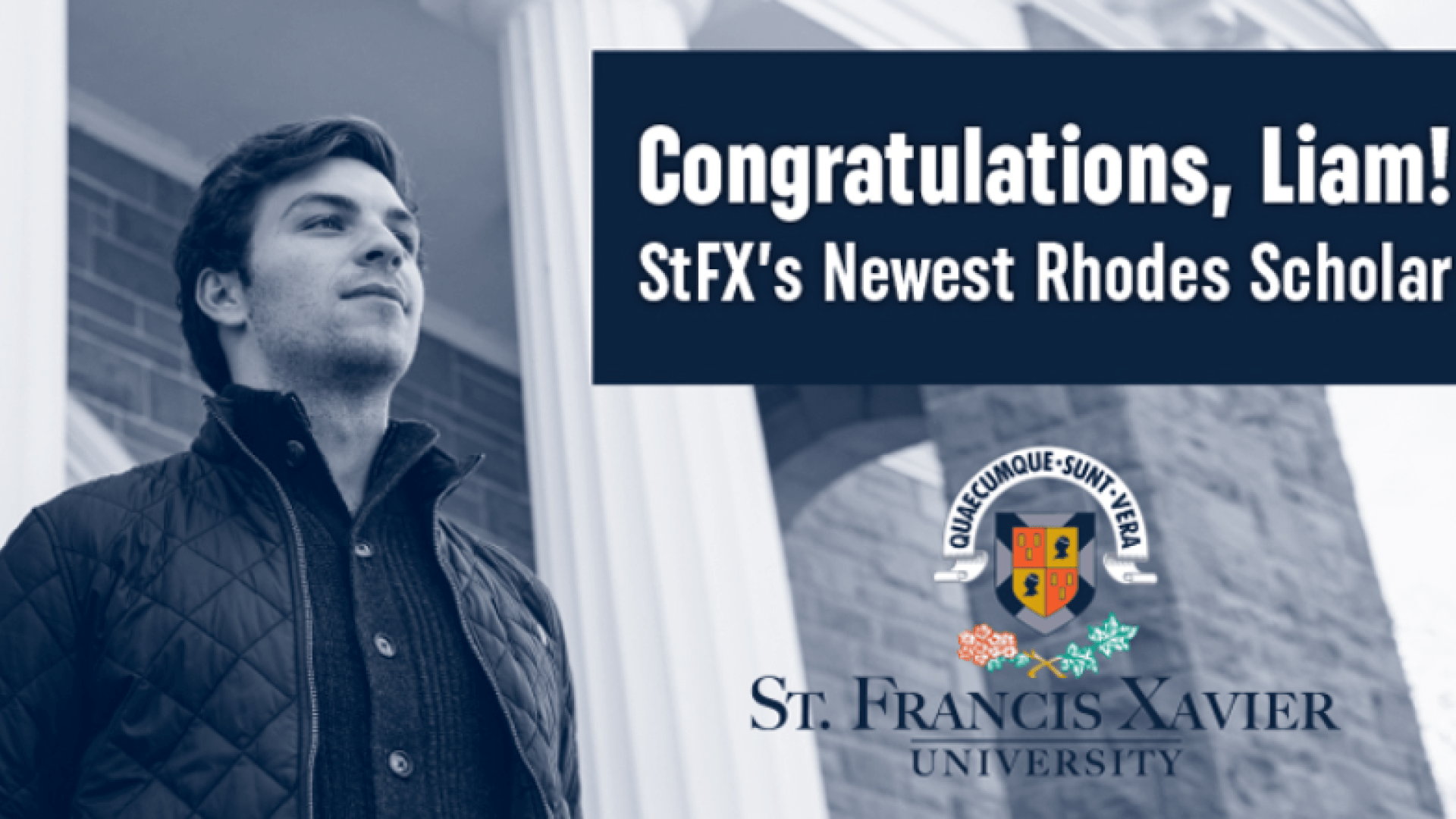 Liam Elbourne, a Schwartz School of Business student from Halifax, NS taking joint honours in business and economics, is StFX’s newest Rhodes Scholar.