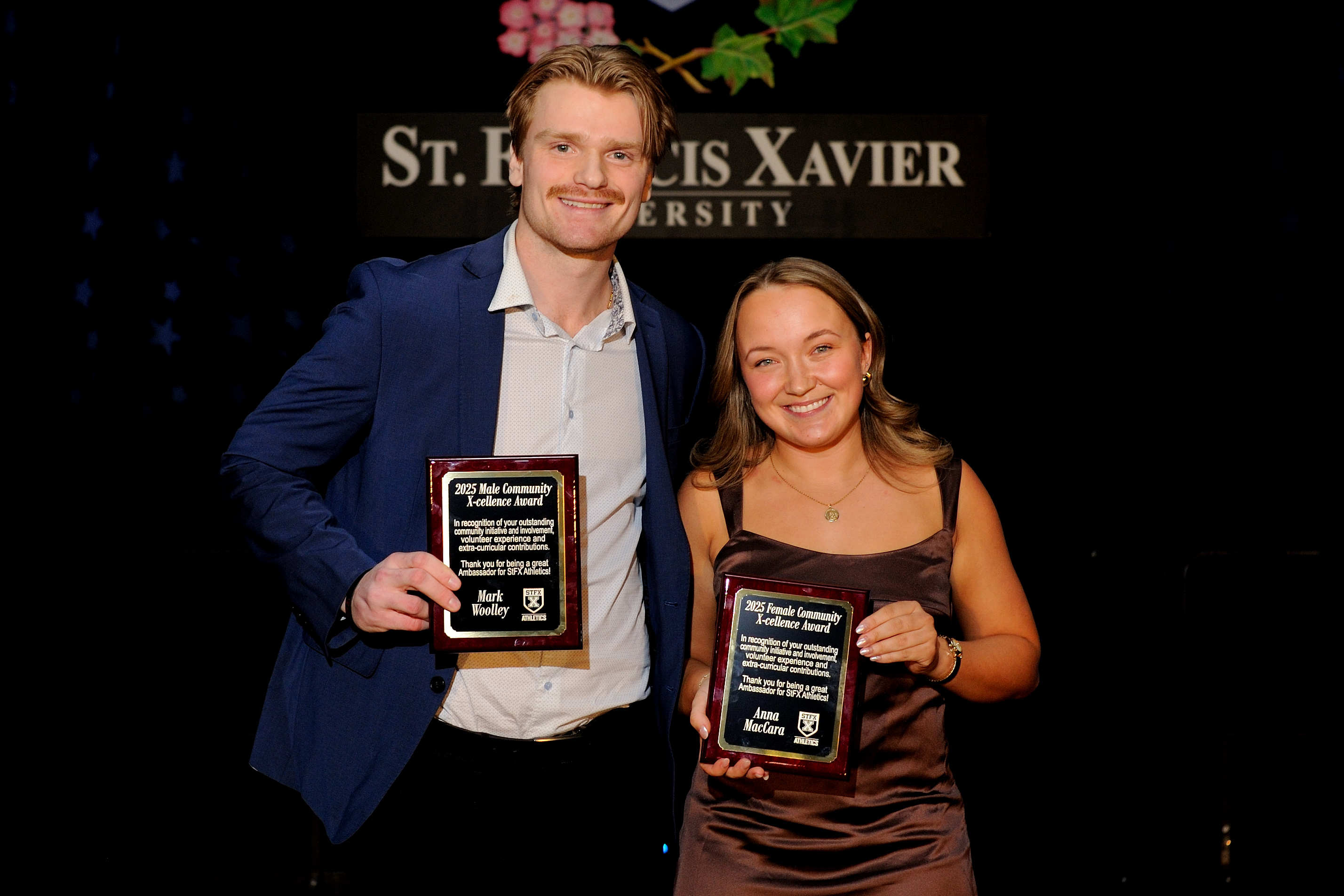The StFX Community X-cellence awards recognize community initiative and involvement, volunteer experience and extra-curricular contributions outside of the student-athlete’s varsity and academic experiences within the past academic school year. The 2025 Community X-cellence award recipients were presented to Anna MacCara and Mark Woolley from the X-Women and X-Men Hockey teams.