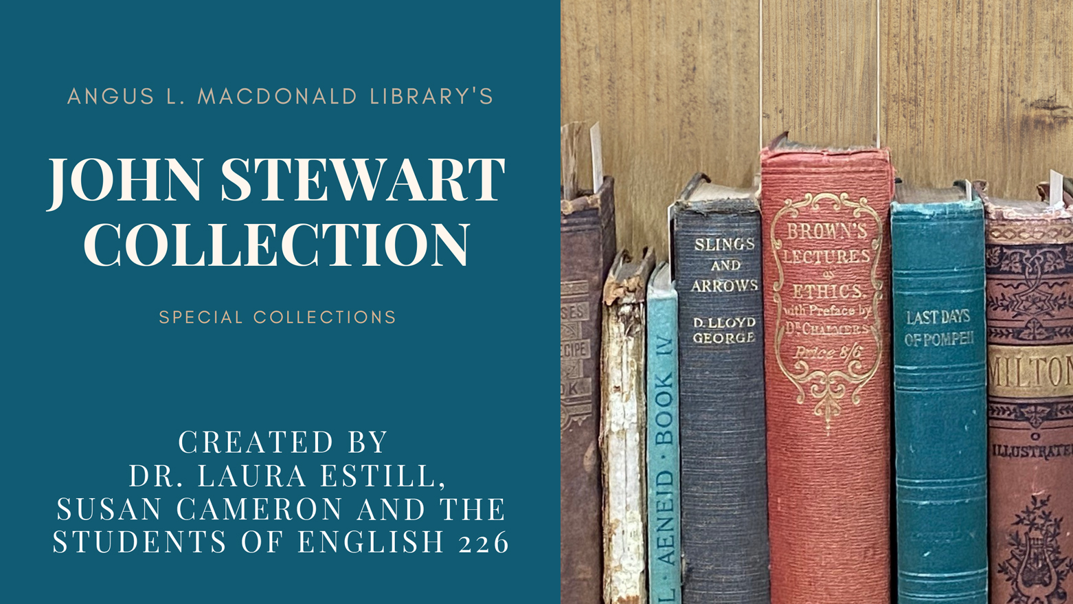 Dr. Estill says the students undertook primary research using the books in this collection and wrote the text of this catalogue. All the two-page write-ups about books are by students. A link to the project can be found HERE. It’s hosted in StFX Scholar, which is the official university repository. Print copies are also found in the Father Charles Brewer Celtic Collection Room at the library.