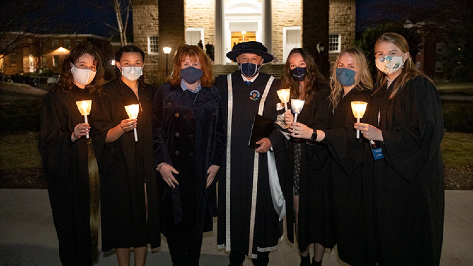 Senior student Amy Graham closed the evening ceremony, leading her classmates in lighting individual candles. Students formed a candlelight procession exiting each venue, illuminating a path for faculty and staff as a symbol of the path faculty and staff have illuminated for them. These paths, Ms. Graham said, also serve as reminder for the future, “which we know will be bright…and a reminder to keep the StFX flame burning bright.”