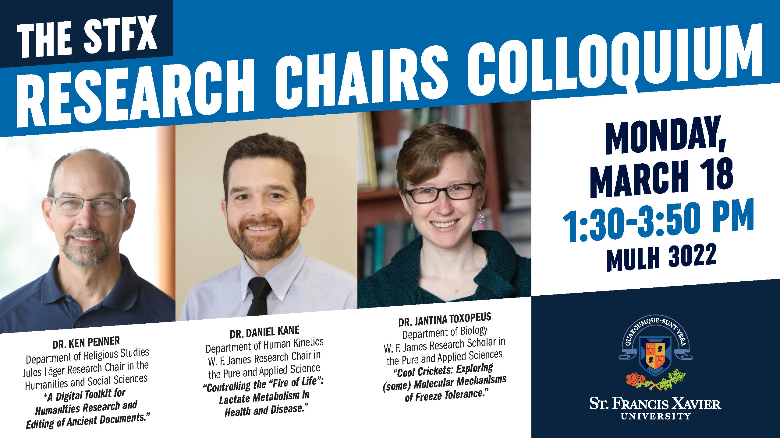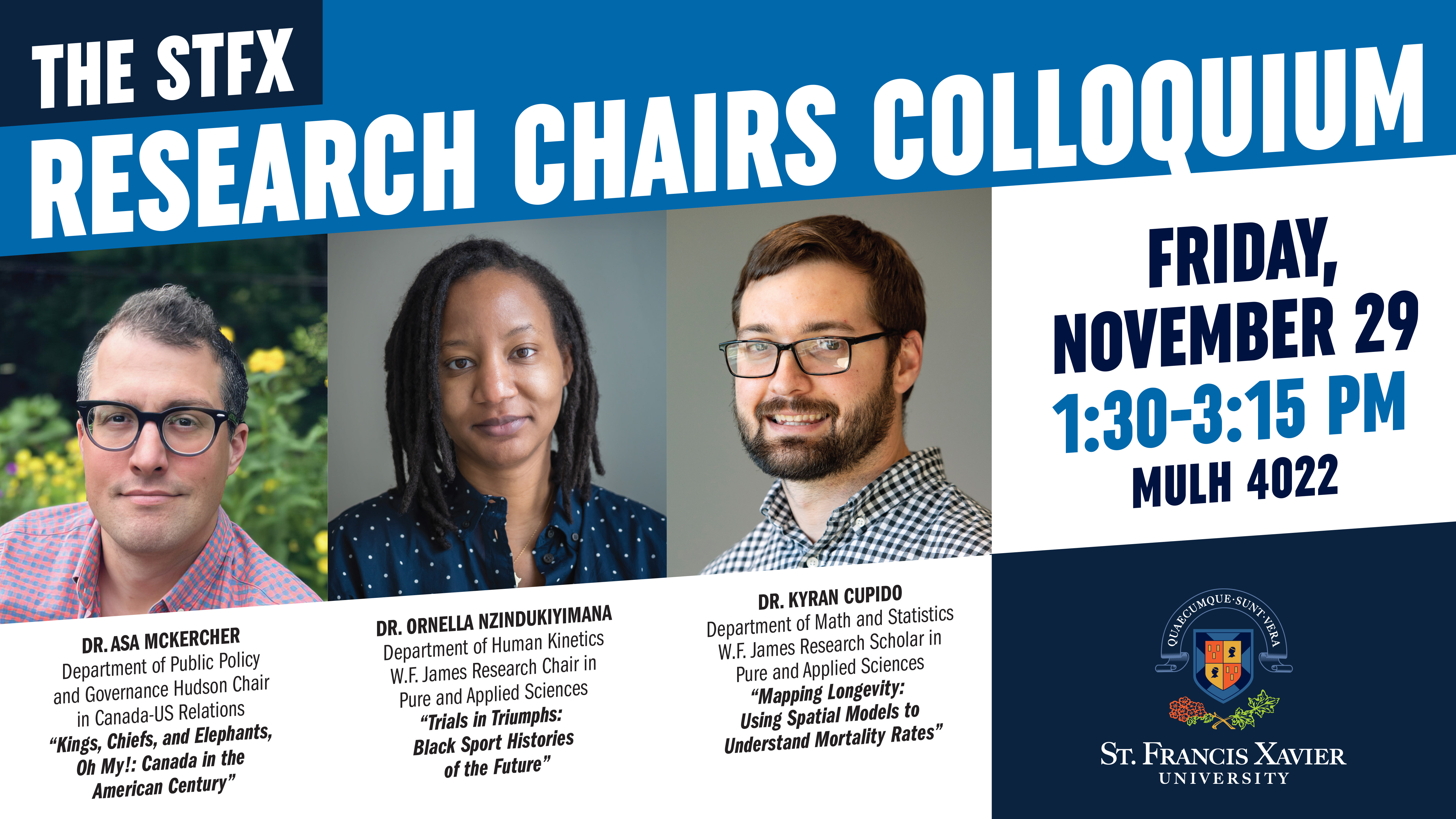 Please join us for the Research Chair Colloquium on Tuesday, November 18, from 11:30 am-1:45 pm. It will be held in Council Chambers, Student Union Building.