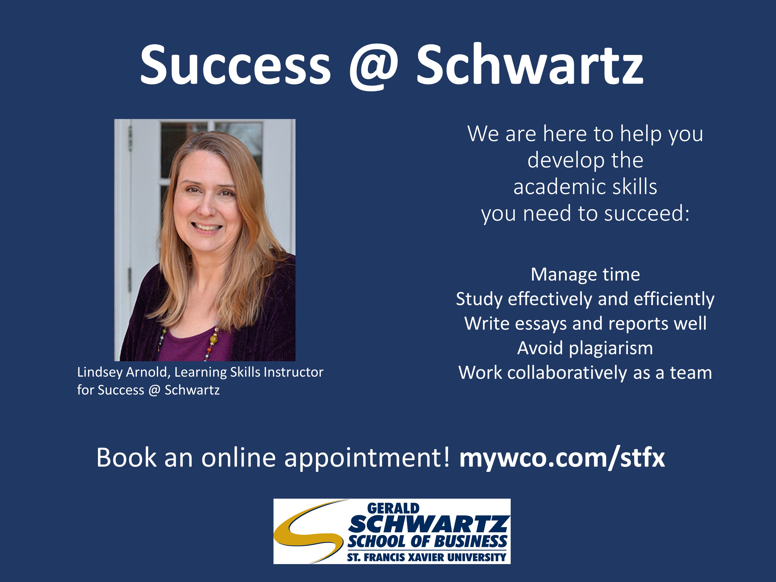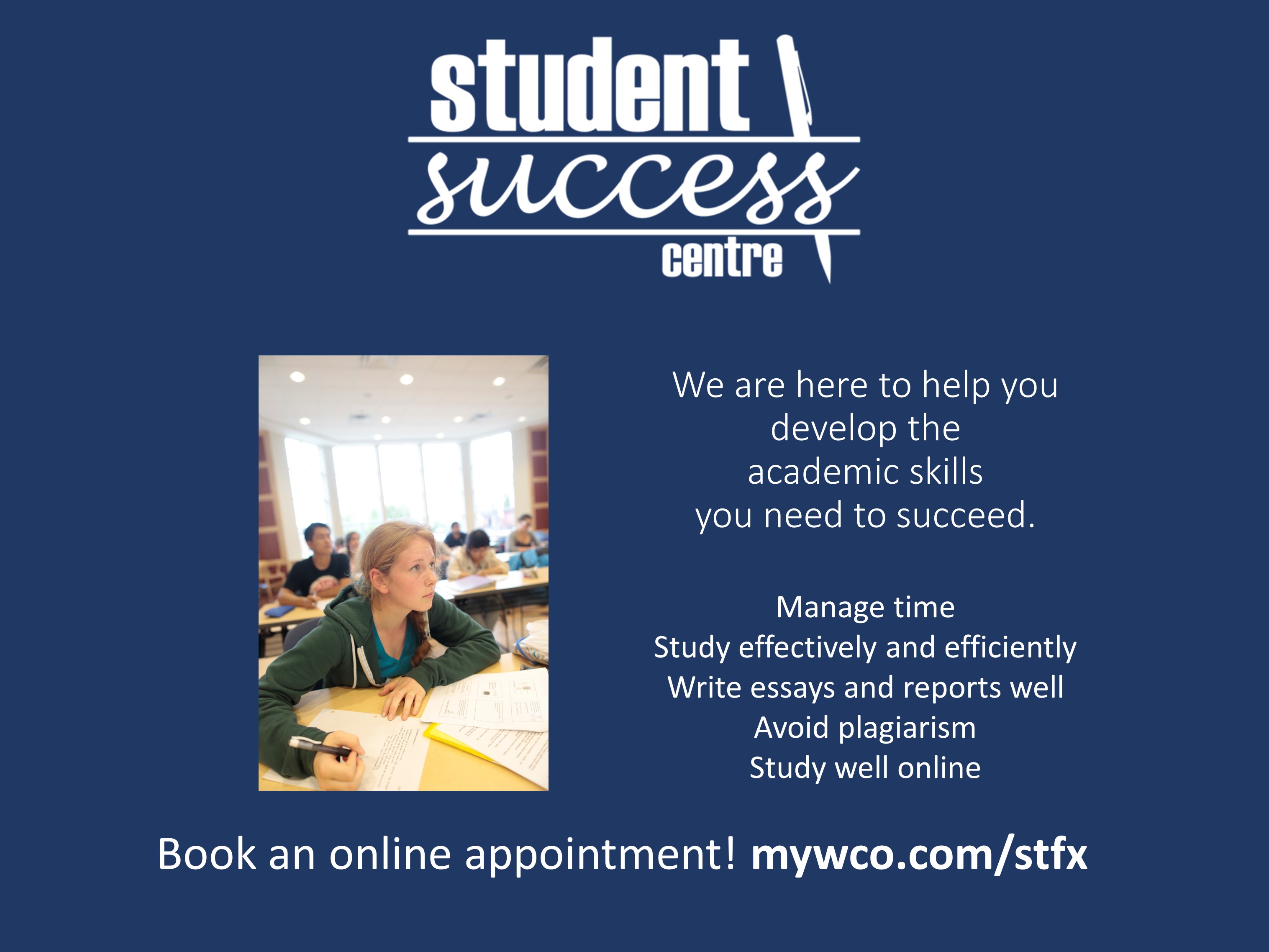 If ever you wish to include in a slide set or Moodle page a reminder to your students of the support available to them through the Academic Success Centre, please make free use of this.
