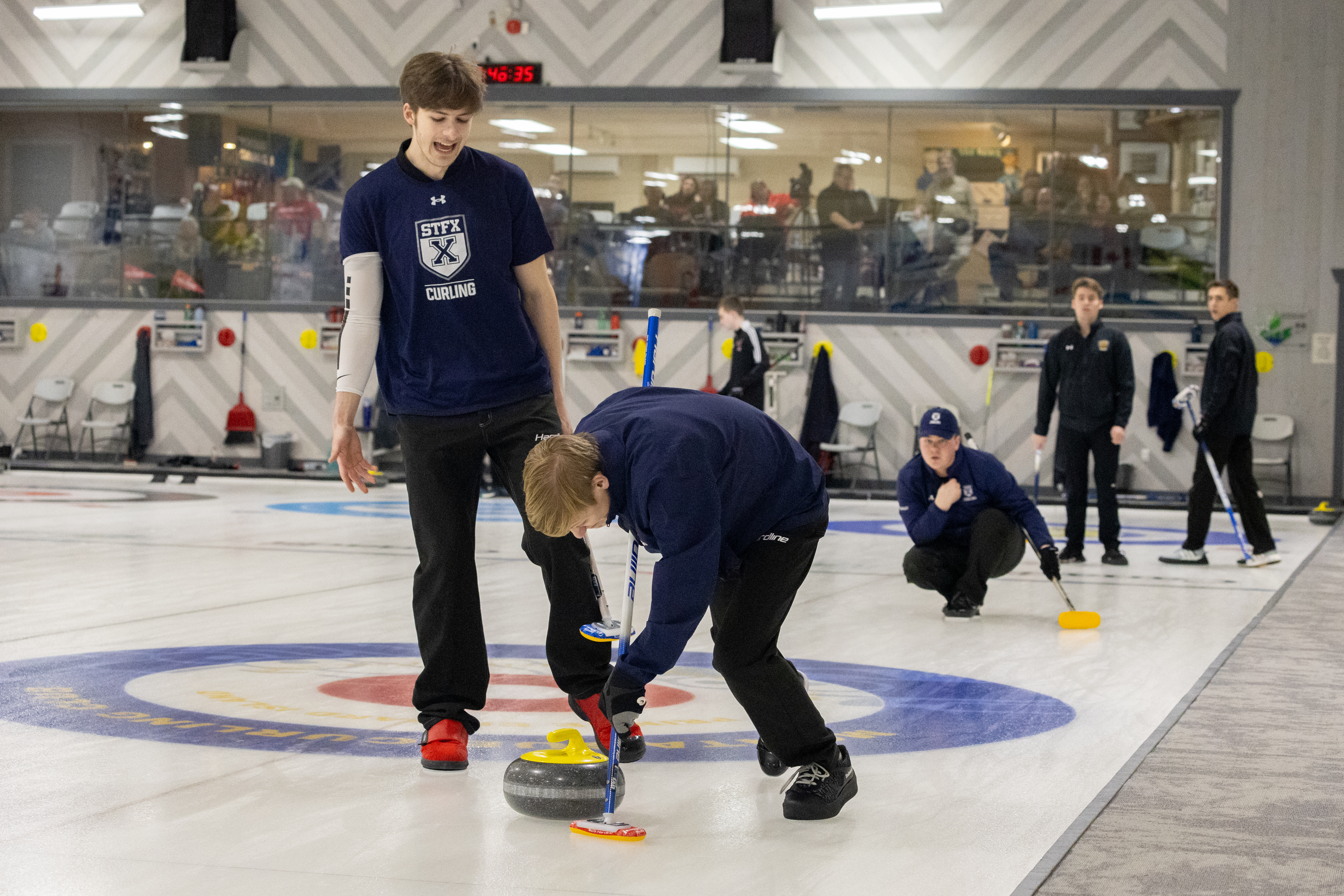 The StFX Curling Club consists of a competitive men’s and women’s team who train and practice hard all year to compete in the annual AUS Championships. The StFX Curling Club also consists of a recreational side where university curlers compete in the Thursday night league at the local Highlander Curling Club. We even have nights where we get together in an empty classroom when there are big curling events going on like the men’s or women’s curling championships for example, and together the curling club watches the games. We also participate in 2-3 local bonspiels throughout the season. If you are interested in joining or have any questions we would be more than happy to chat with you or answer questions, we are always happy to help!